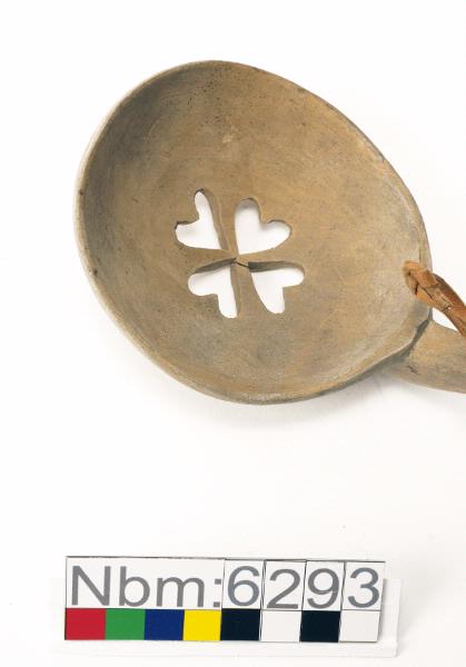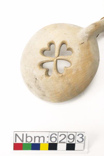 • Rund form relativt platt. Fyra hjärtformade urtag i botten. Skaftet skadat.
