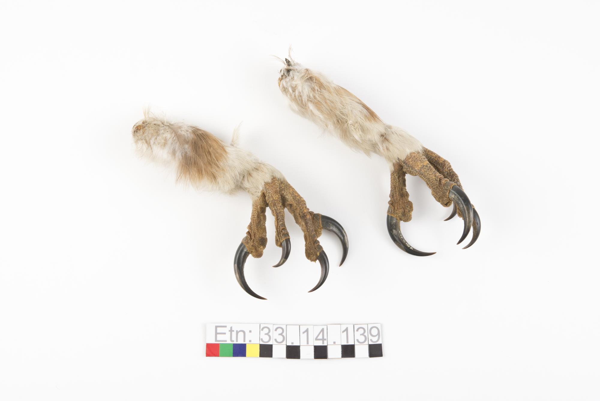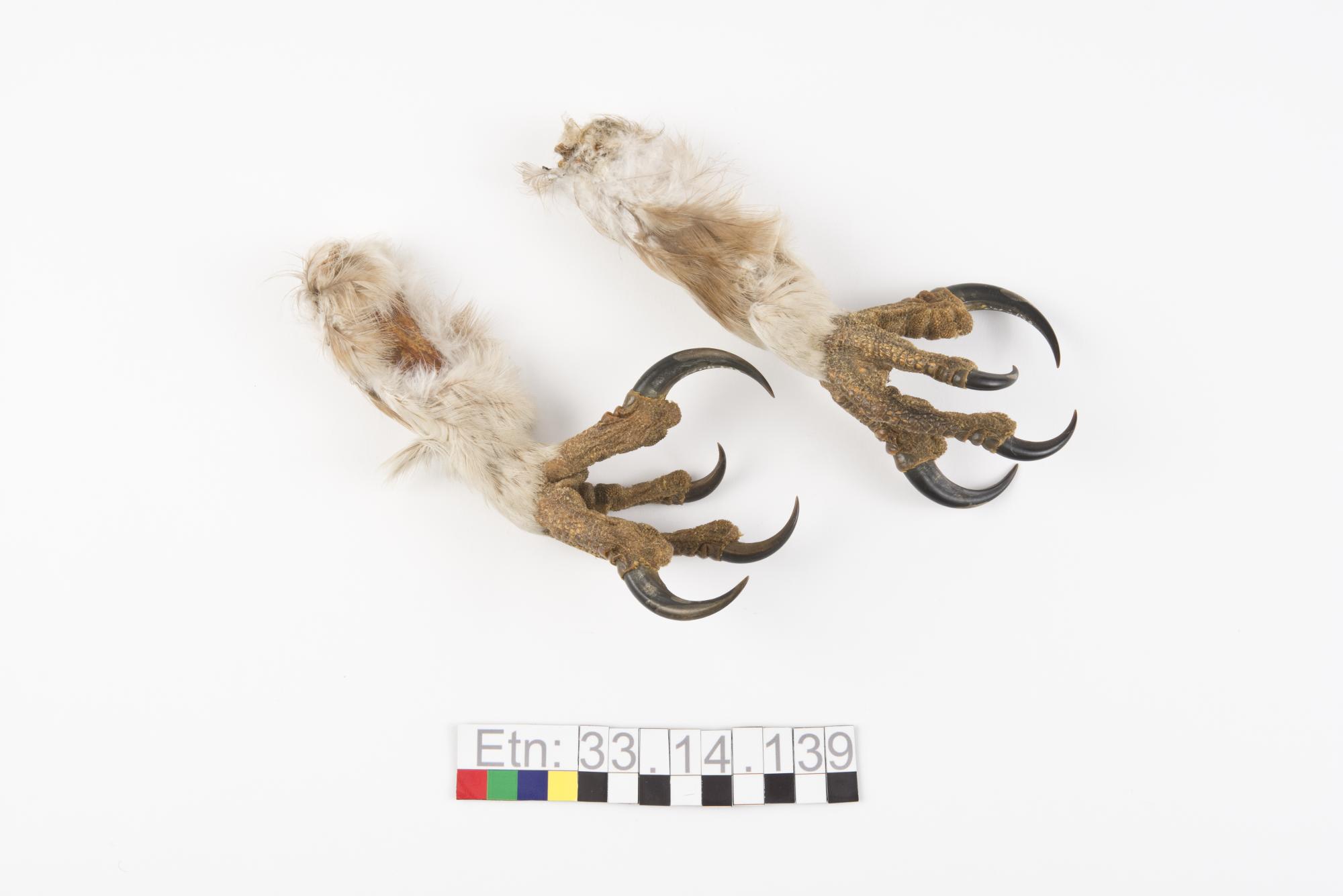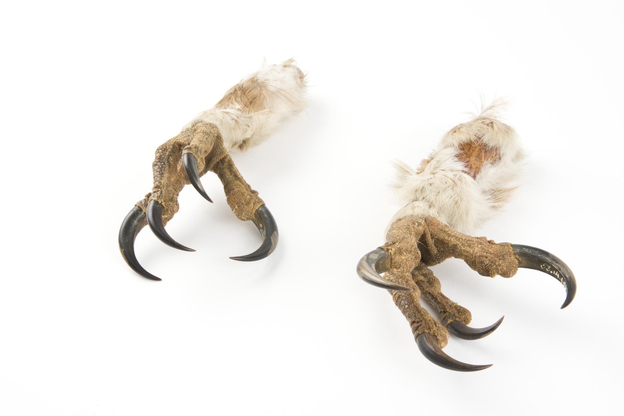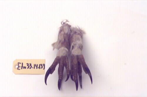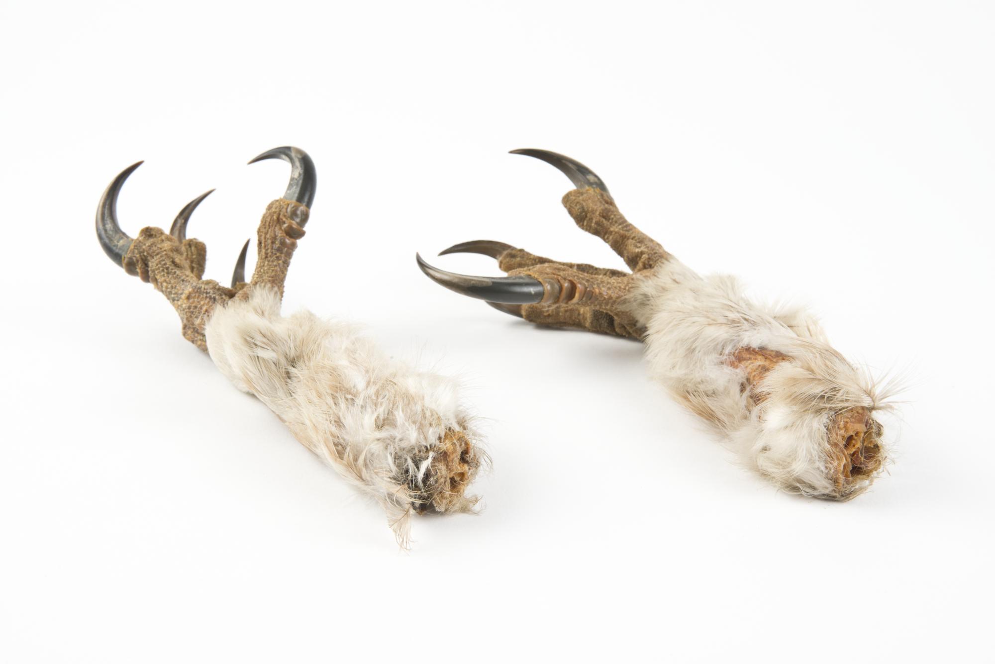 • Med vidsittande tars. Vit till gulbrun fjäderbeklädnad. Hela paret.