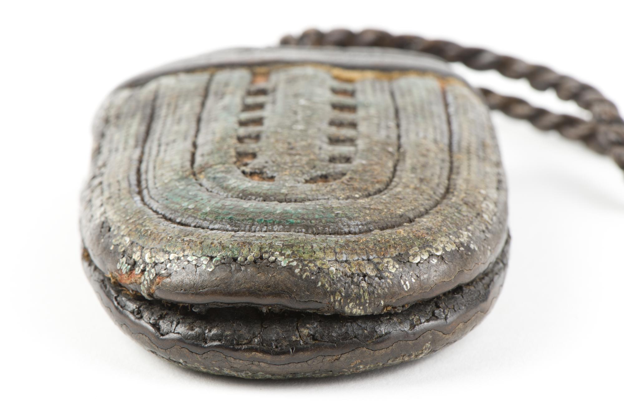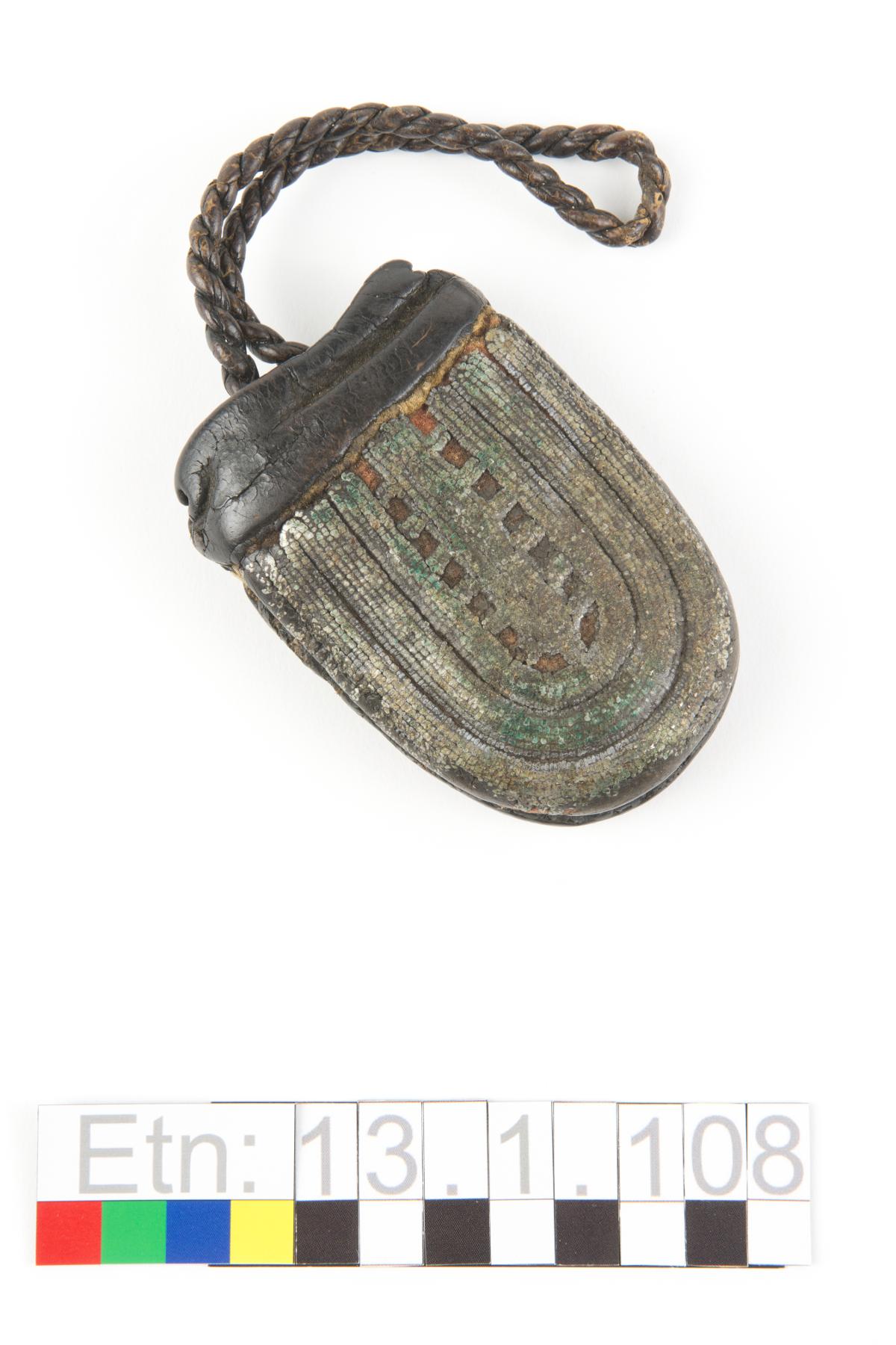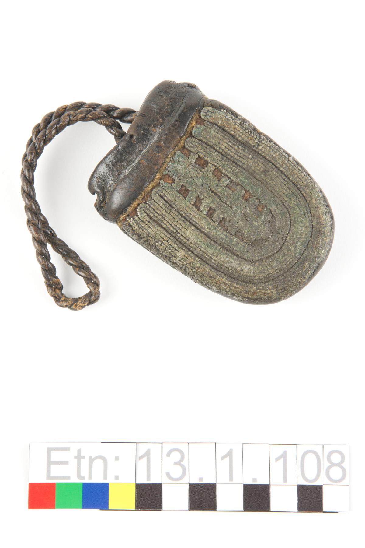 • Uppgift från Etnografiska museets katalog. Pung av skinn, med tennbroderier. Tjänar diverse ändamål och bäres hängande vid bältet.Lppland.