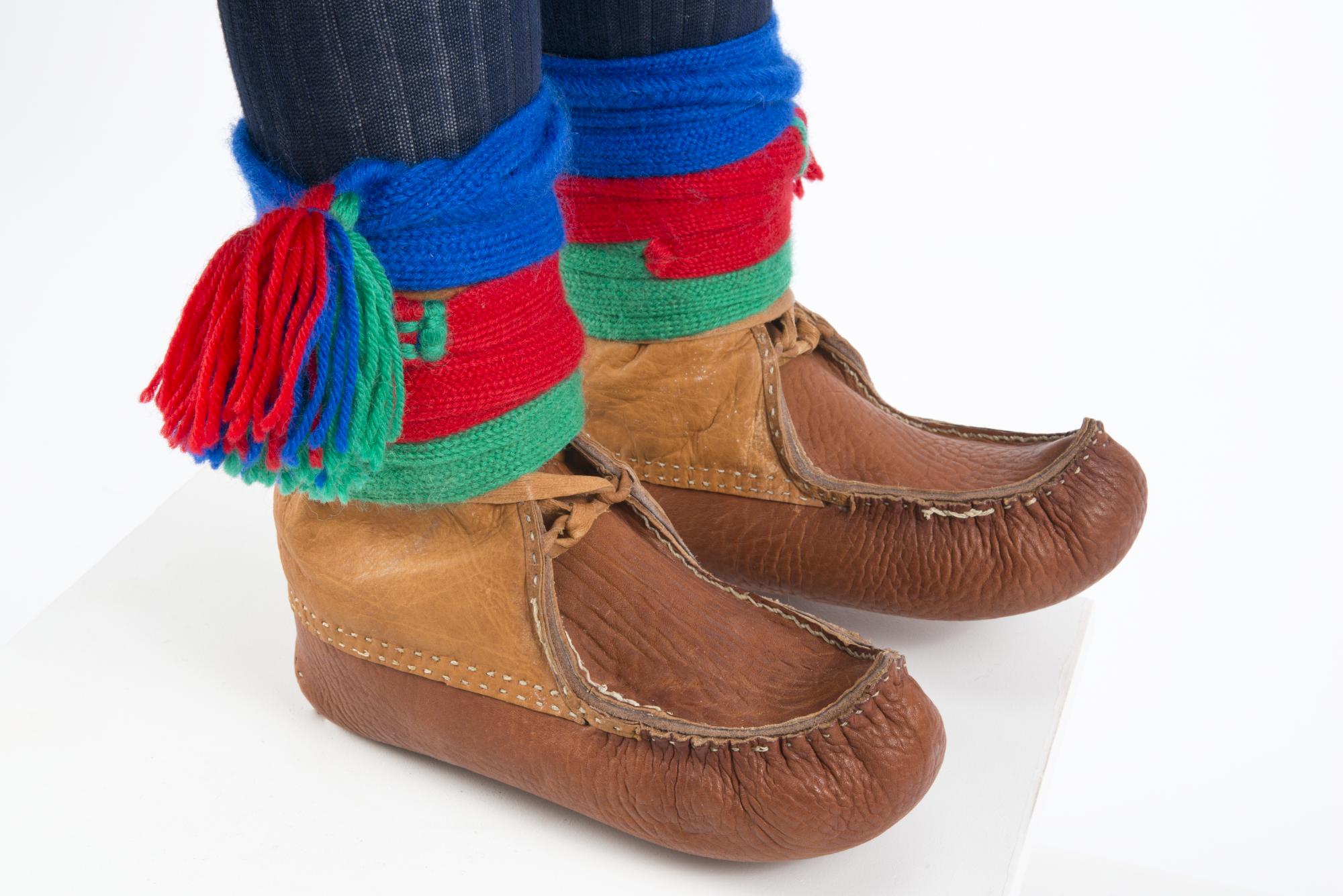 AJ 1958:1-2, 1:skoband, 2:skoband. Ett par lagda skoband i 3-fältsmodell, Arvidsjaursmodell för kvinna.