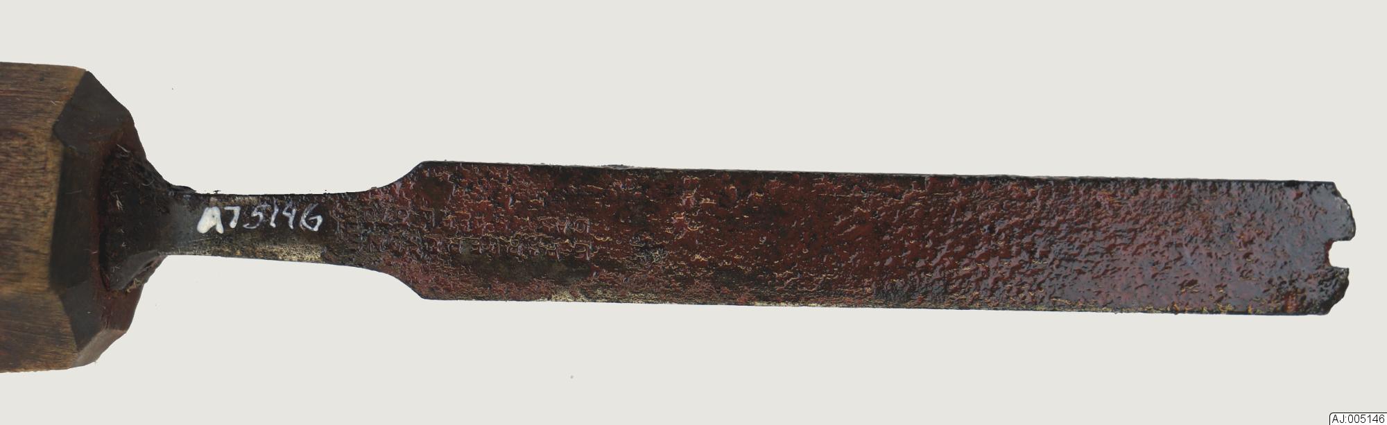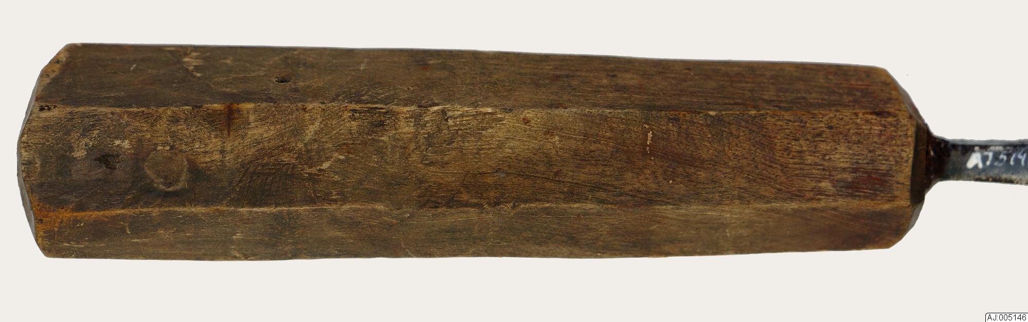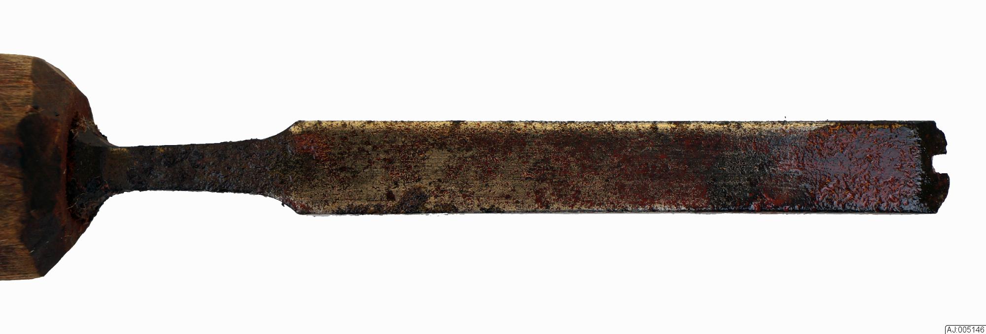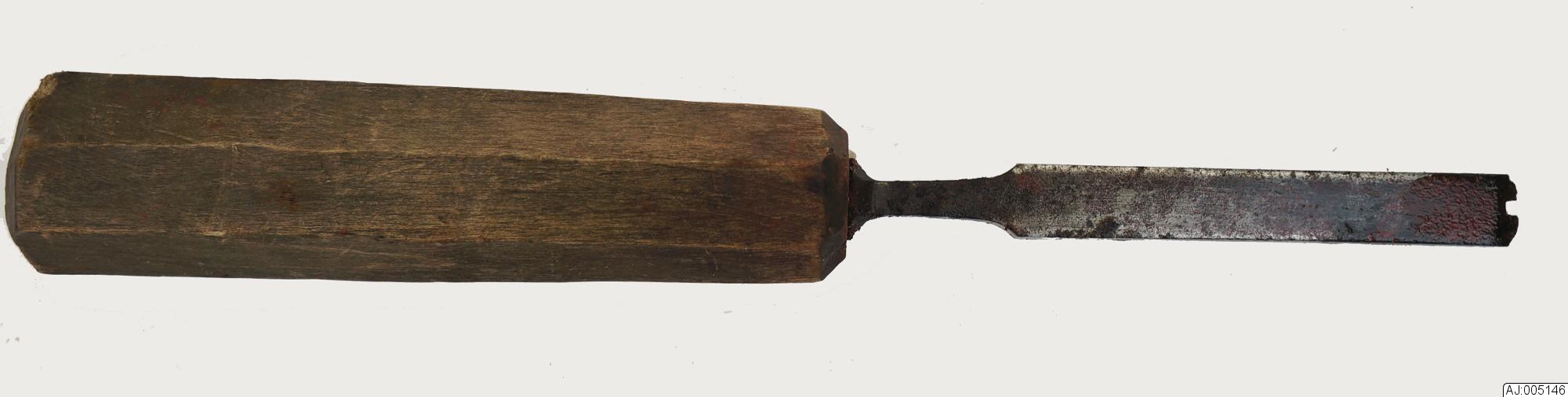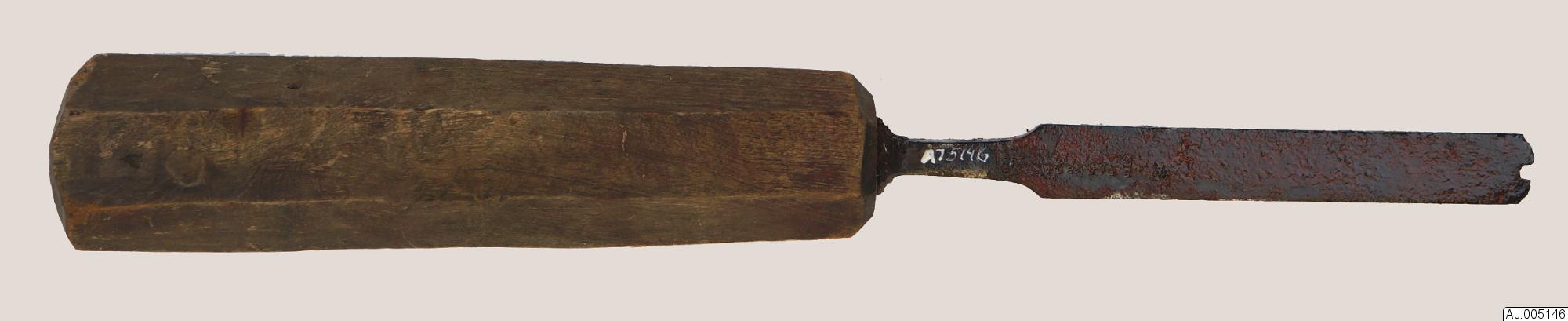 • En typ av mejsel med "delad" spets av järn. Handtag av trä.