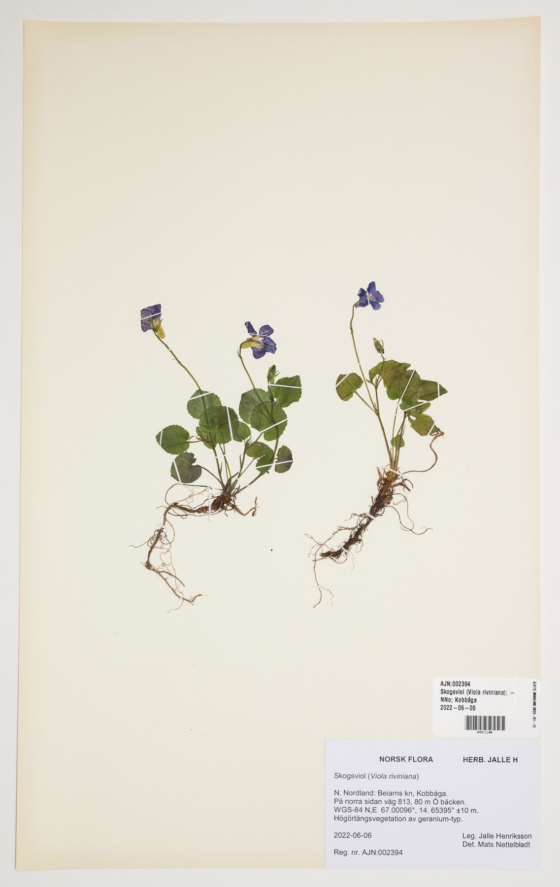 • Skogsviol (Viola riviniana)