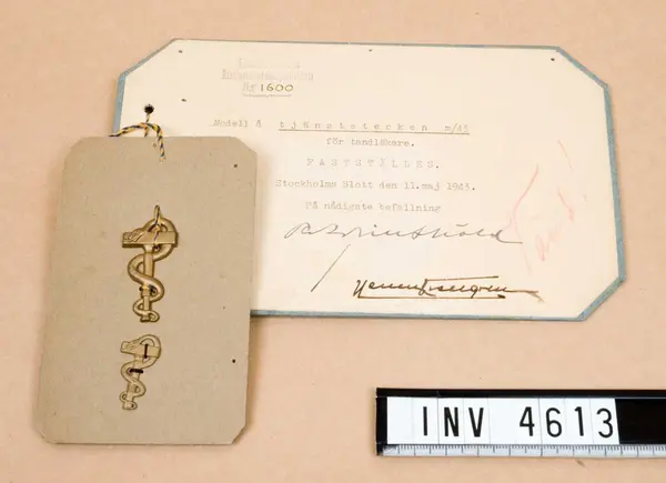 • Av bronsfärgad metall. Utgörs en orm slingrande runt en T-formad hävel, tandnyckel.