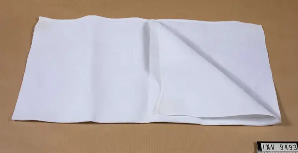 En specialvävd servett till officermässen I 14. Damastvävd med prickar i mitten och i hörnen "Hälsingebocken".