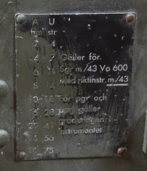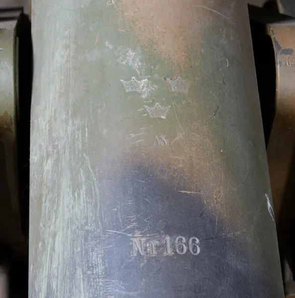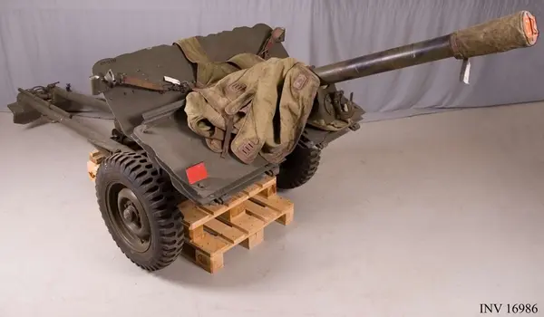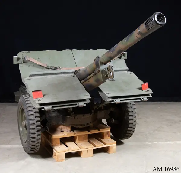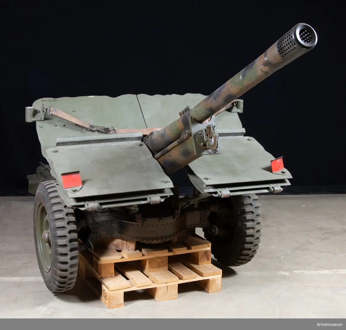 Pansarvärnskanon m/1943, system Bofors, med tillbehör. Vikt: 975 kg. Kaliber: 57 mm. Tillv.nr: 166. Eldrörets vikt: 310 kg, märkt: 57 mm pvkan m/43 B Bofors 1946 B vikt 310. Stålhjul med halvmassivgummihjul, d:700 mm. V -lavett. Kikarsikte m/1943, Nr:161. Största skottvidd: 8500 m. Rekylkraft: 2100 kg. Tillbehör: 1 pjäslåda nr: 161 (11 904 62000), 1 pjäsväska nr: 161 (11 904 61000), 1 kikarlåda med kikarsikte m/1943, nr:161. M4805-751011, 1 rengöringskolv, 1 viskare, 1 viskarstång med fodral av väv, 2 draglinor, 1 kapell för pjäs, 1 mynningsskydd av väv, 1 ren av läder med spänne och krok.