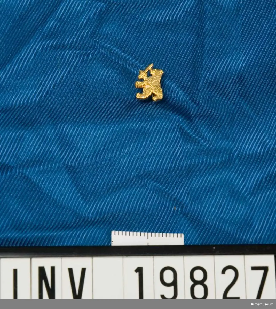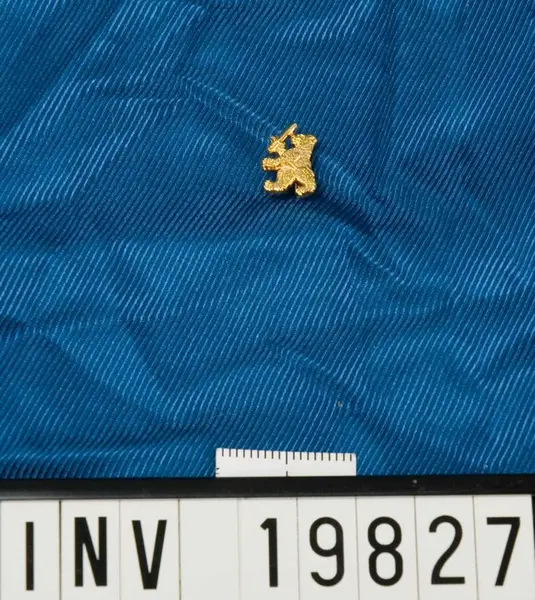 • Nålen visar en stående björn med ett svärd i höger framtass. Nålen förvaras i en ask tillsammans med en medalj och en miniatyrmedalj.