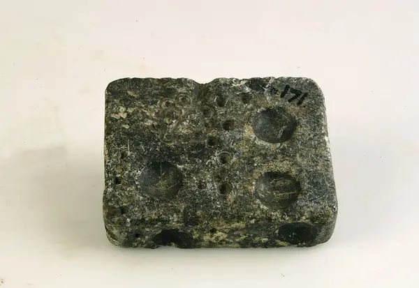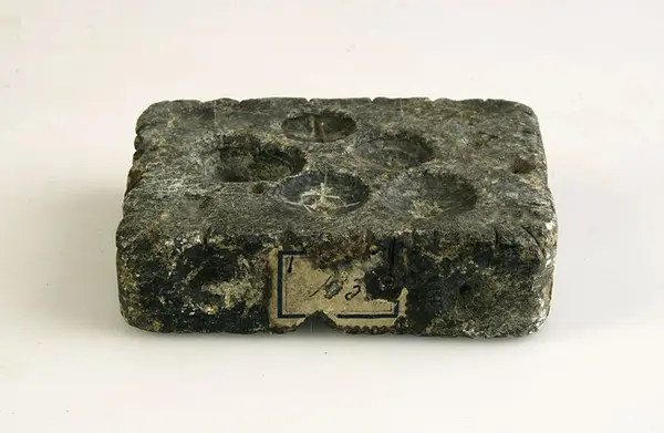 Knappform av täljsten för 17 knappar.