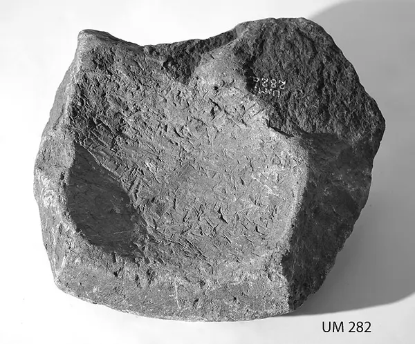 Fragment av dopfunt, täljsten.
