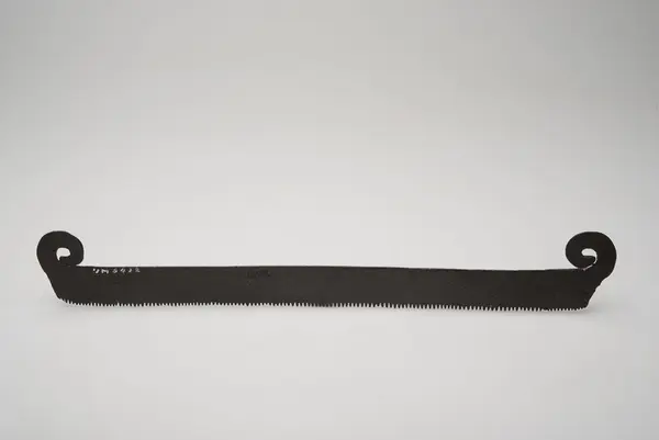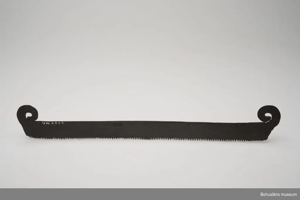 Platt avlångt bakredskap. Nertill har det små tänder. Kortsidorna avslutas i en volutform. Tänderna är något slitna ut mot kanterna. Litt.; Keyland, Nils, Svensk Allmogekost, SVENSKA TEKNO LOGFÖRENINGENS FÖRLAG, STOCKHOLM 1919, sid. 208-213. Ur handskrivna katalogen 1957-1958: Brödnagg L. 38,7. Av järn. Föremålet helt.