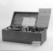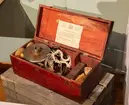 Lådan är betsade röd/brunt. Locket sitter fast med två gångjärn. Lådan stängs med två små krokar. På locket finns ett handtag av metall. På insidan locket finns en garantisedel utfärdad den 20 septemb...
