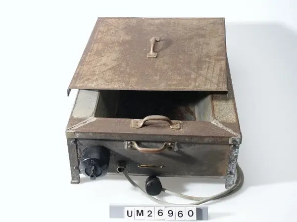 "Denna "apparat" har använts för att smälta choklad på Nyholms konditori, Kungsgatan i Uddevalla.