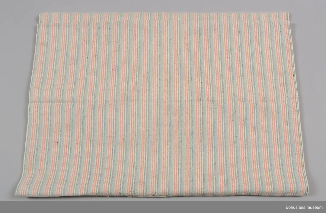 Tyget kommer från Emma Magnusson, död runt 1962/1963, boende på ett torp på Tureborg, Uddevalla. Adress Garvaremyren (nu Hagarnevägen). Emma sydde nattskjortor, skjortor och lakan av flanell ur Kampenhofs bomullsfabriks sortiment. Hon var gift med Amandus som överlevde henne (Tureborgsvägen 16); son Arne. Kerstins bror, Olof Adamsson, har tidigare skänkt en tygpacke med flanell till Bohusläns mu...
