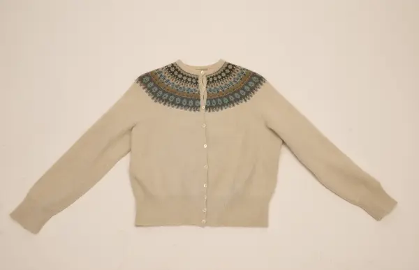 Ägarens dotter Mieko Iwase berättar i översättning från japanska av Fuyumi Nakamur: Min mor Chieko Akiyama besökte Sverige 1960, när hon arbetade som journalist. När hon återvände till Japan gav hon plaggen till mig och jag har behållit dem sedan dess. Jag är inte säker på var i Sverige hon var. Men vid denna tid arbetade hon aktivt i frågor kring handikappades ställning, ensamstående mammors sociala ställning, osv. Därför verkar mamma ha besökt olika vårdhem för handikappade och hem till singelmammor. Utöver Bohus Stickning-plaggen fick jag t.ex. en Dalahäst av henne, en broderade duk med namnet Tivoli samt en norsk folkdräkt och smycken som souvenirer. Så jag antar att hon har åkte runt Sverige, Danmark och Norge. Jag använde tröjan bara vid några fåtal tillfällen. Men jag tänker alltid på mamma när jag ser den och jag har sparat den omsorgsfullt. Så är jag väldigt grad om ni bevara och visa den tillsammans med mina fina minne som hänger ihop med min mamma. Nyligen fick jag veta att Bohus Sticknings verksamhet riktade sig mot dem som hade sociala svårigheter i Sverige och att Bohus Stickning hjälpte till att förbättra den ekonomiska situationen på den tiden. Jag tyckte att det var intressant eftersom min mamma arbetade i Japan för att förbättra kvinnors status och för att ta itu med sådana frågor. - - - Koftan hade jag burit några gånger. Min mamma Chieko Akiyama åkte antagligen till Sverige på en jobbresa. Jag var barn då och minns inte så klart, men familjen hade troligen inte råd åka utomlands som turister. Jag vet inte heller hur hon skaffade det här Bohuströjan. Men jag har förstått att Bohuströjor var så dyra då att det motsvarade en månadslön. Dessutom det finns en halsduk, vilket är ganska ovanligt. Med tanke på detta, antar jag att hon har fått detta som en gåva av någon som hon intervjuade för sitt radioprogram. En kort presentation av min mamma, Chieko Akiyama och hennes karriär: Chieko Akiyama föddes 1917 och började som vuxen arbeta som reporter på ett av NHK:s radioprogram [Japans statliga radio]. Senare kom hon att under 45 år arbetad som programledare på ett radioprogram som döptes efter henne "Akiyama Chiekos samtalsssalong" på Radio Tokyo (nuvarande TBS radio). Hon spelade en banbrytande roll som den första kvinnliga journalisten inom radiomediet i Japan. Det var inte så vanligt att en kvinna hittade fast jobb inom massmedia och kunde arbeta under så lång tid. Hon var mycket aktiv inom arbetet att främja kvinnors ställning i samhället. Chieko Akiyama var även författare och skrev 29 böcker som utgavs på olika förlag, bland annat Iwanami shoten och Bunshun bunko. Chieko Akiyama tog ställning genom att protestera mot kriget i hela sitt liv. Hon är också välkänd som högläsare av barnboken "Stackars elefanter" av Yukio Tuchiya, utgiven av Kinno Hoshisha, som handlar om de elefanter på Ueno-djurparken som fick dödas under andra världskriget på order av militära myndigheter. Chieko Akiyama belönades för sina radioprogram med Esseist-priset från Japans Esseist Club och erhöll också litteraturpriset The Kikuchi Kan Prize. / Mieko Iwase