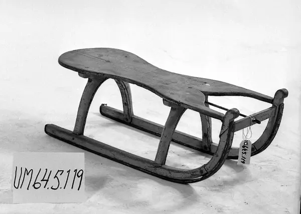 På kälkens sittbräda finns rester efter dekorationsmåleri. Brädan är bemålad med oljefärg och runt om löper en målad rand och mitt på i framändan står målat F O A. Måleriet täcker även träbenen som går ned till medarna, de är grå med en smal röd rand målad på.