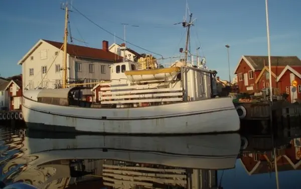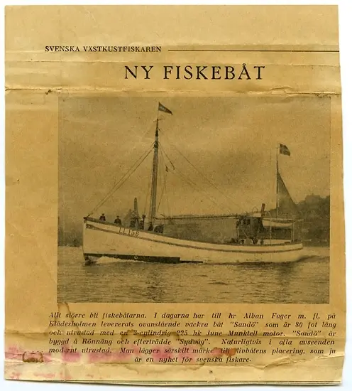 Sandö är utrustad med stort snedsegel av nylonduk, sytt på Syversens på Smögen.