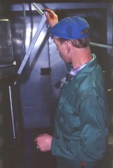 Kjell Josefsson diskar och byter silduk före mjölkningen.