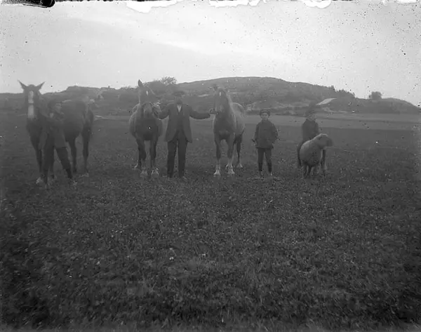 • Enligt notering: "Fyra människor. tre hästar, ett får".