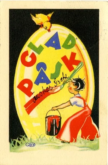 Tryckt uppgift på kortets baksida - Förlag: Turitz & Co, Göteborg. Svensk tillverkning.Illustratör är signaturen GECE eller GECEO.