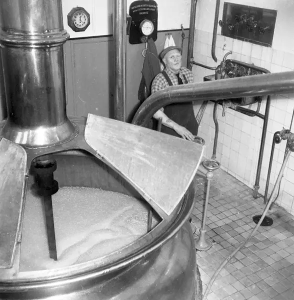 Enligt notering:1958 Utsiktens bryggeriGustav Uddén vid bryggpannan som han skötte