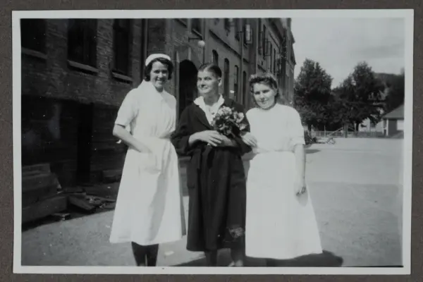 Fotografier från familjealbum som avbildar personal och de patienter som vårdades på beredskapssjukhuset Margretegärdeskolan i Uddevalla 1945. Våren och sommaren 1945 gjordes skolan om till beredskapssjukhus för överlevande från Nazitysklands koncentrationsläger.