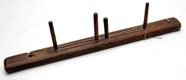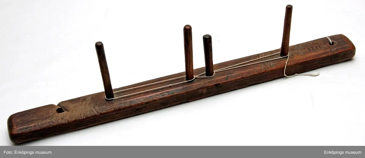 • Solvstock i obehandlat trä med hål för upphängning. På baksidan finns två A ristade. På ena sidan finns årtalet 1751 följt av AGL.