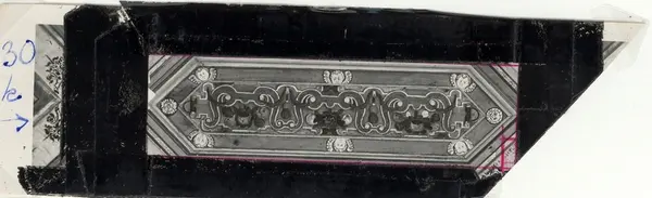 Gyllene salens kassettak på Kalmar slott. På vissa plåtar har Martin Olsson klistrat eltejp för att markera hur bilden skulle beskäras i boken.