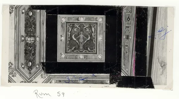 Gyllene salens kassettak på Kalmar slott. På vissa plåtar har Martin Olsson klistrat eltejp för att markera hur bilden skulle beskäras i boken.