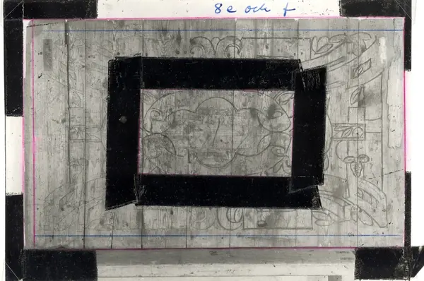 Kalmar slott. Detalj av Kungsmakets panel orginalpannån. På vissa plåtar har Martin Olsson klistrat eltejp för att markera hur bilden skulle beskäras i boken.