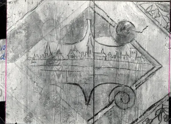 • Kalmar slott: Detalj av Kungsmakets panel i pannå. Orginal pannåns mittparti.