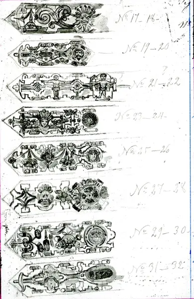 Gyllene salen på Kalmar slott. Skisser av Nils Månsson Mandelgren 1848. På vissa plåtar har Martin Olsson klistrat eltejp för att markera hur bilden skulle beskäras i boken.