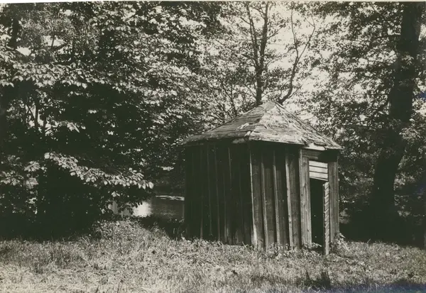 • Avträde vid gamla huvudbyggnaden vid bruket.