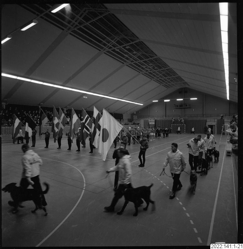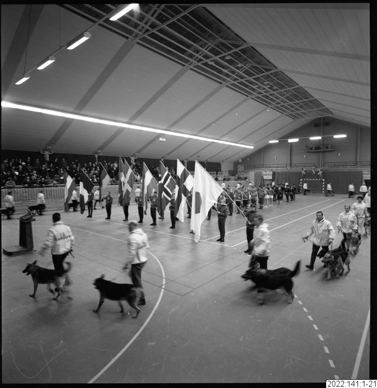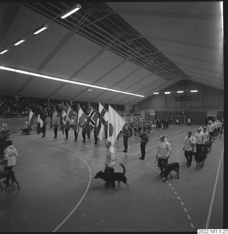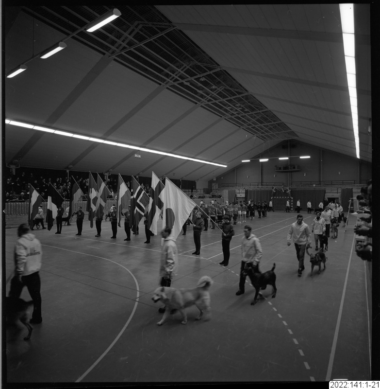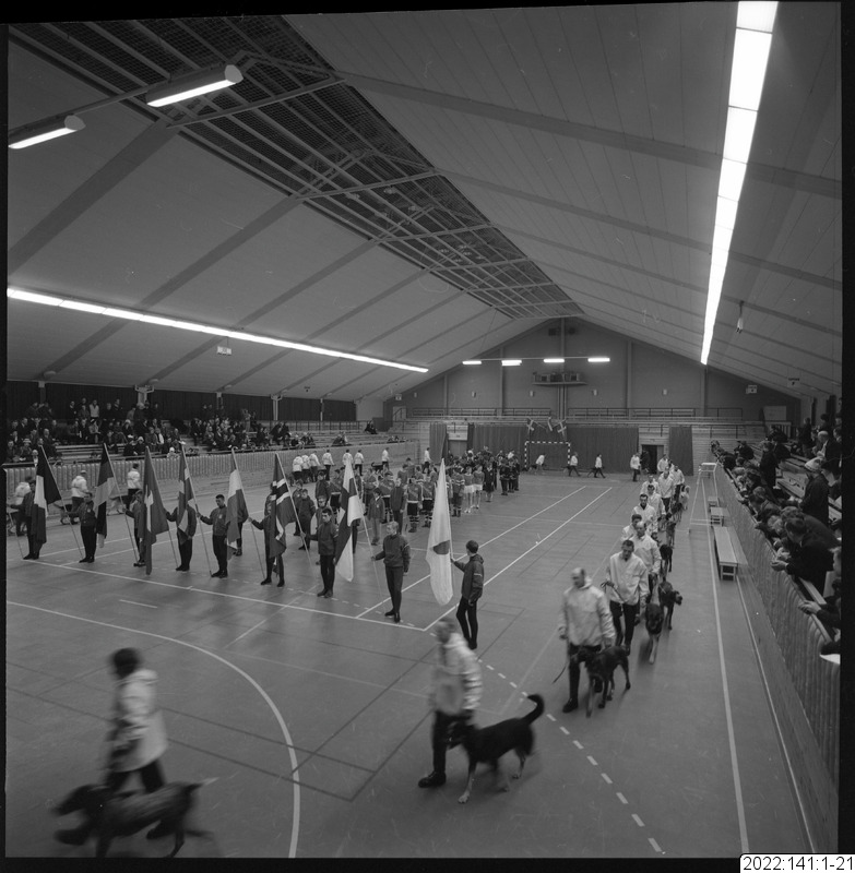 parad, flagga, sporthall, invigning, draghund