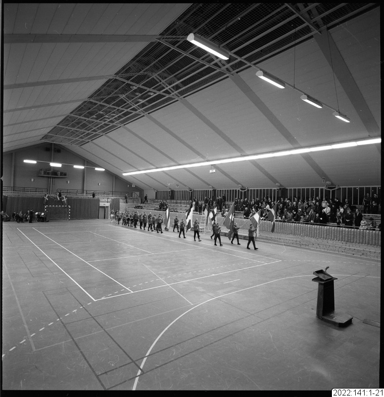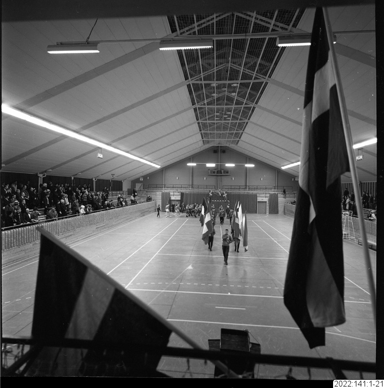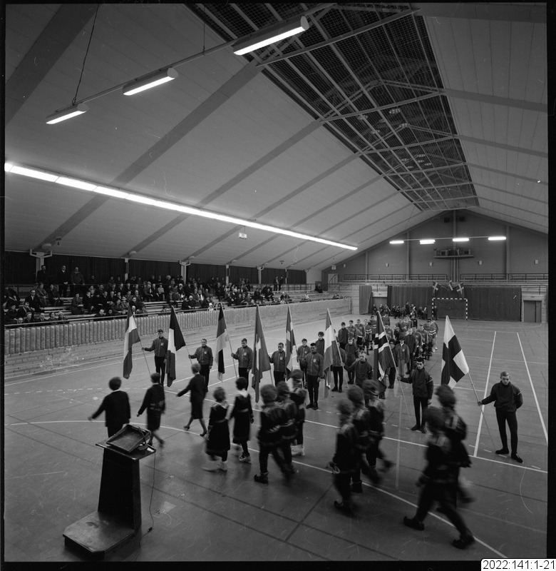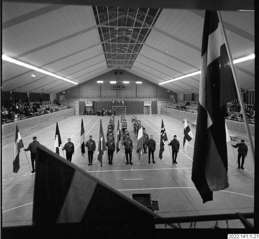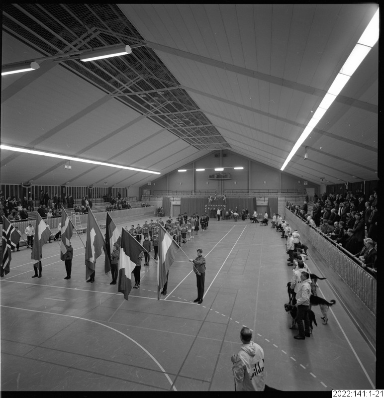 parad, flagga, sporthall, invigning, draghund