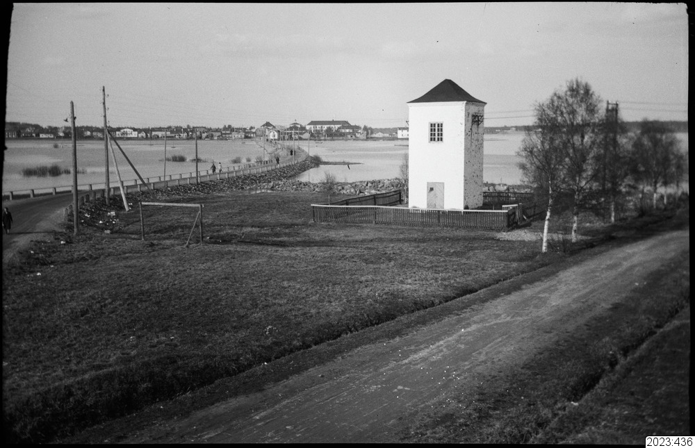 Vägbanken mellan de bägge städerna - länderna. Tid: 1935-1940 tal.Fysiskt original från Haparanda kommun med accessionsnummer 1978:236
