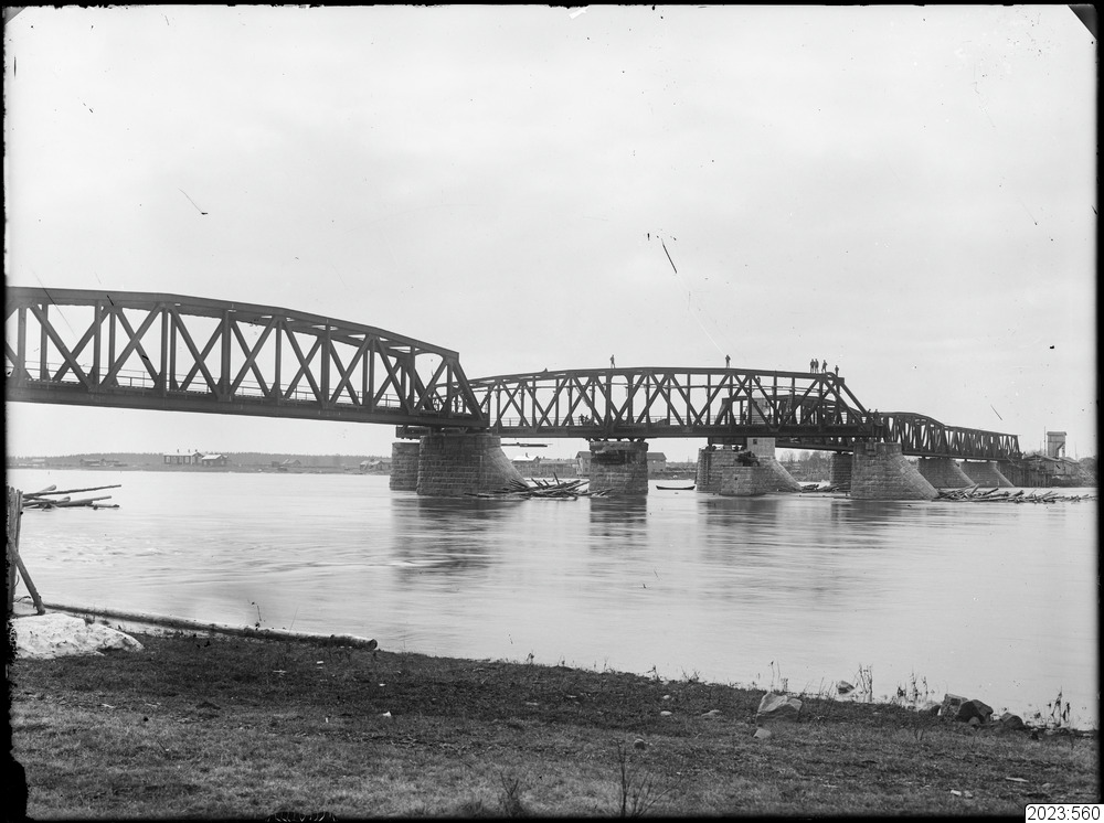 Järnvägsbron under byggnad. Mittpartiet anbringas. Tid: 1917-1918.Fysiskt original från Haparanda kommun med accessionsnummer 1978:360