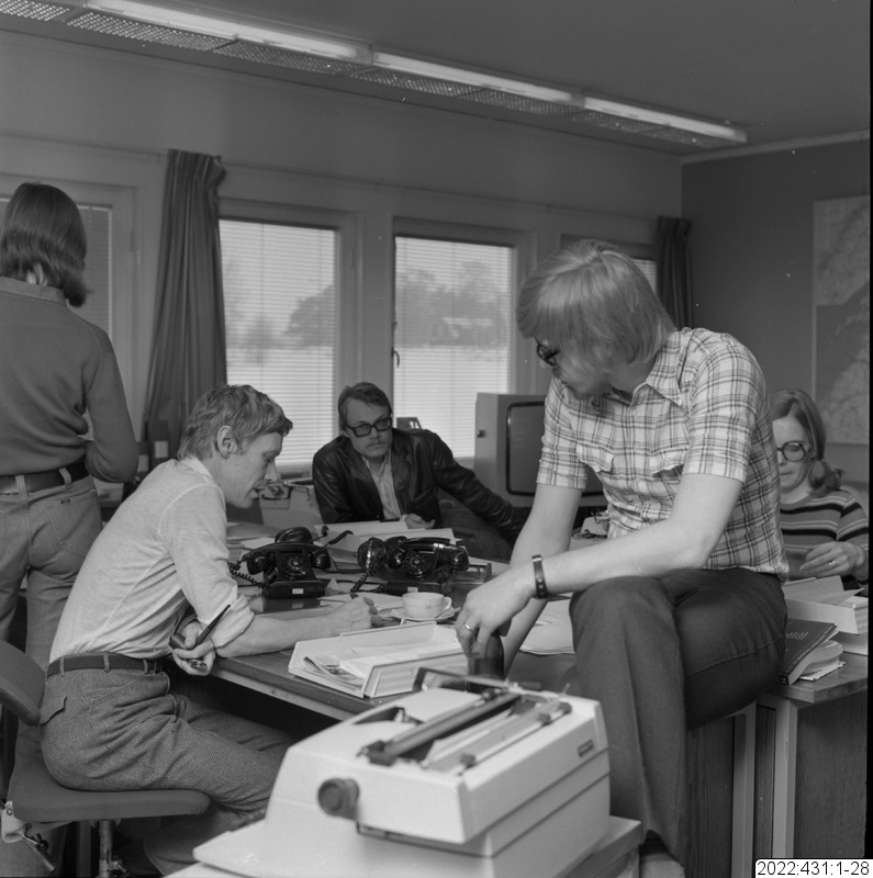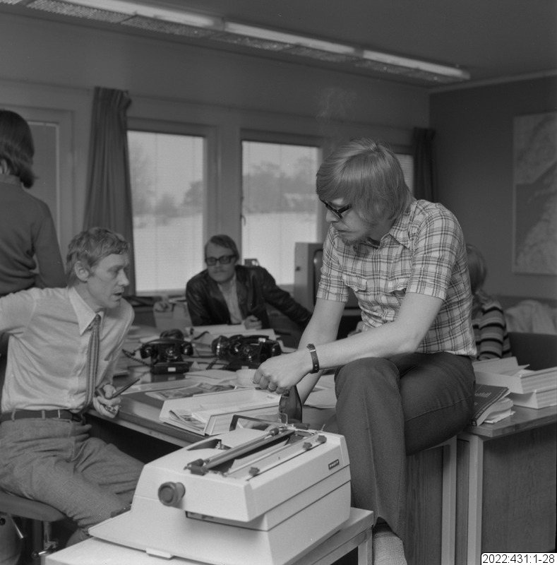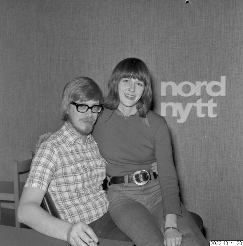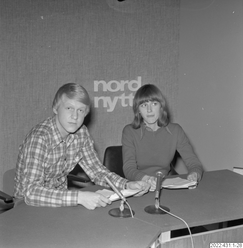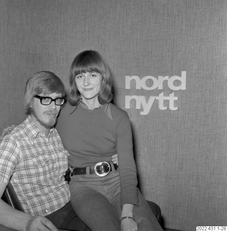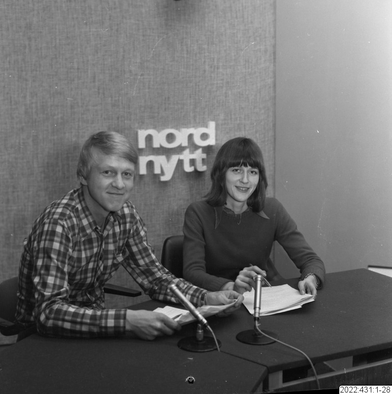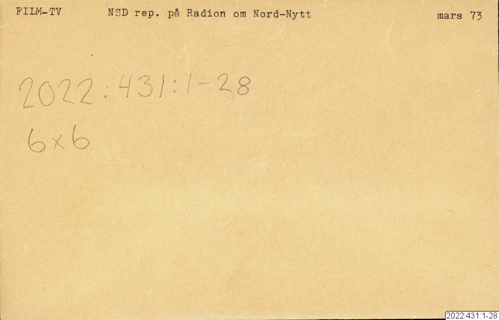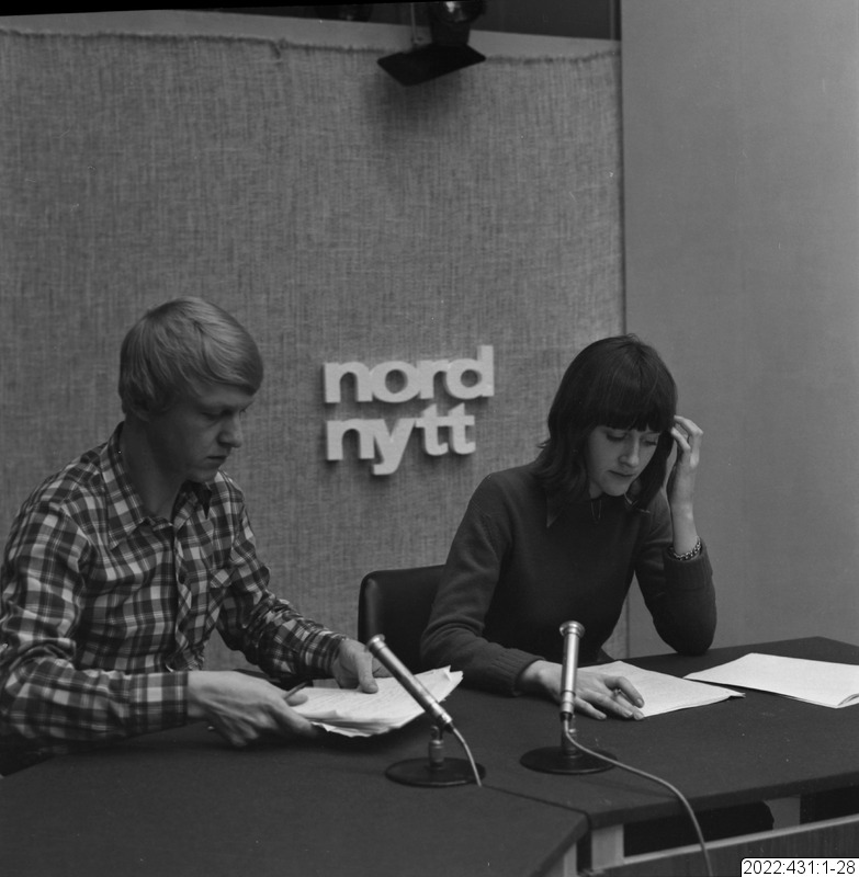 NSD reporter på Radion om Nord-Nytt, mars 1973. En av bilderna i serien (oftast den sista) visar det kuvert som Bert Persson förvarade bilderna i. Den maskinskrivna texten på kuvertet är Berts beskrivning av innehållet. Noteringar i blyerts är (för det mesta) skrivna av museipersonal.