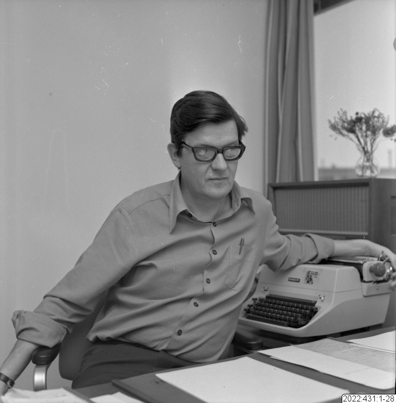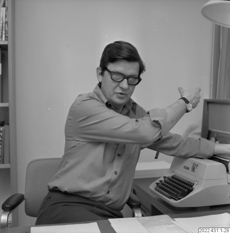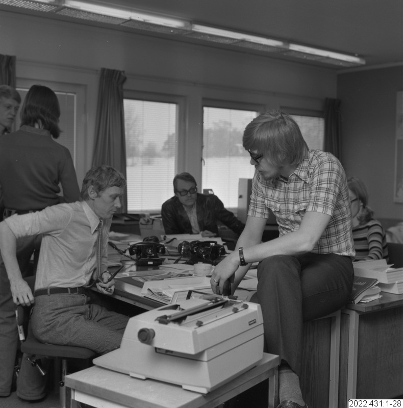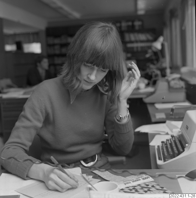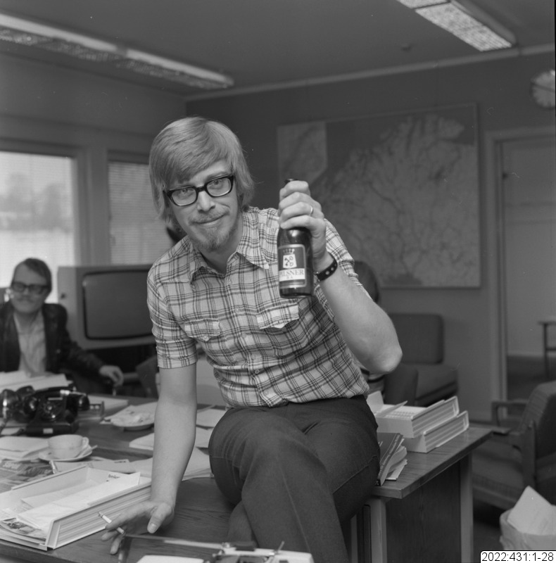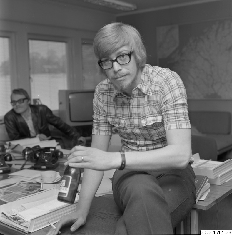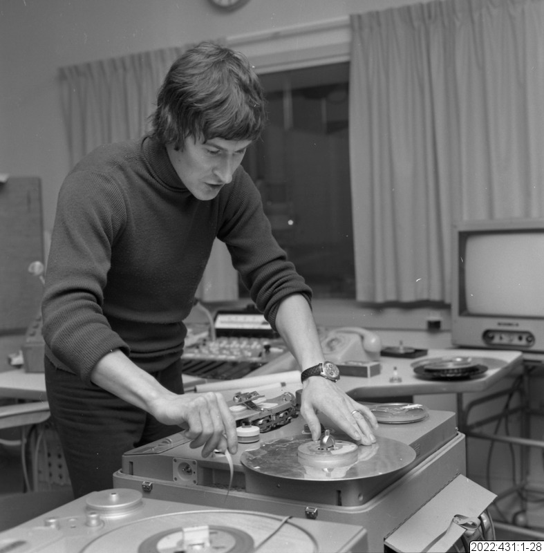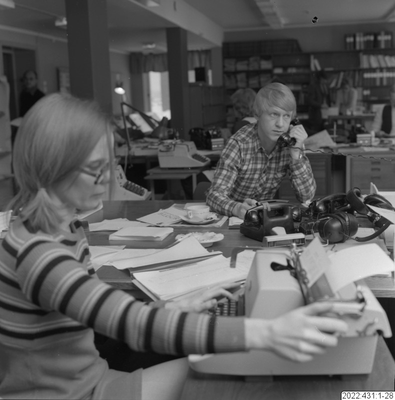 NSD reporter på Radion om Nord-Nytt, mars 1973. En av bilderna i serien (oftast den sista) visar det kuvert som Bert Persson förvarade bilderna i. Den maskinskrivna texten på kuvertet är Berts beskrivning av innehållet. Noteringar i blyerts är (för det mesta) skrivna av museipersonal.