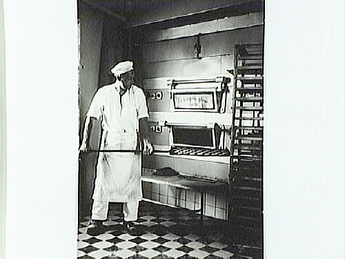 • Berglund Bageri. Svartöstan. Ture Nyberg gräddar småkakor i nya elektriska ugnen.