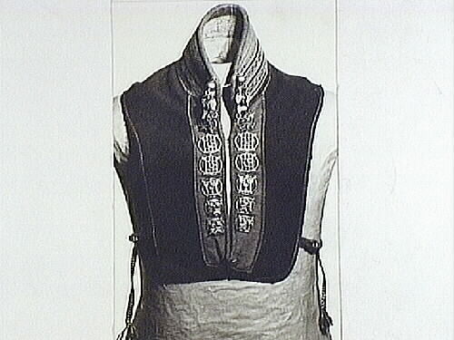 • Silverkrage, sydd av mörkblå vadmal, med en rikt tenntrådsbroderad ståndkrage. På kragen är tolv maljor och tio? hängknappar av förgyllt silver fastsydda. Den har tillhört släkten Länta, Jokkmokks socken.