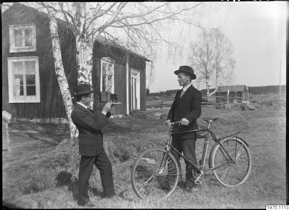 • Fotografen Hjort utanför sin gård, fotograferar grannen Valfrid Johansson.
