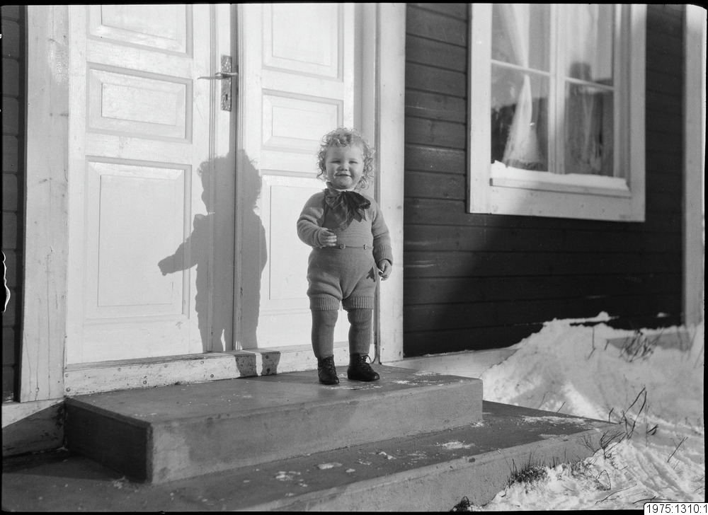 • Folke, son till Sven Isaksson i Skäret, står på trappan till snickeriet ca 1937.