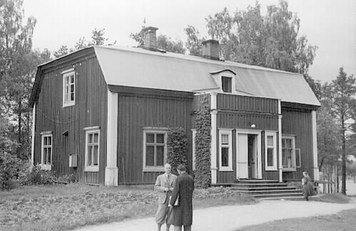 • Överluleå gamla tingshus på "Kyrkkläppen" i Boden. Professor Andreas Lindblom och juvelerare O. Forsslund samtalar.