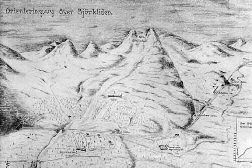 • Orienteringsvy över Björkliden med profil över färdleden Björkliden - Låktatjåkkastugan - Låktatjåkka.