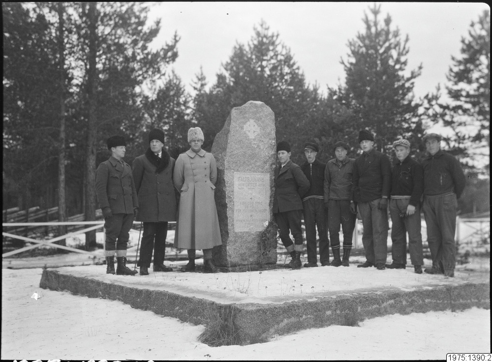 Hemvärnsmän vid soldatgraven i Alvik. 1. Bror Vikström, Ale, 2. Helmer Hornberg, 3. Löjtnant från Boden, 4. Anselm Flinkfeldt, Ale, 5. Gunnar Eriksson, 6. Emil Vikström, 7. David Nyström, 8. Henning Sandberg, 9. Herbert Vikström.
