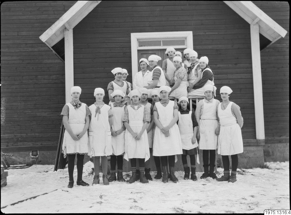 Matlagningskurs i Alvik på 1930-talet. 1. Karin Lundström, 2. Valborg Nordström, 3. Aina Lindvall, 4. Valborg Åström, 5. "Fröken" Hanna Hornberg, 11. Elisabeth Lindström, 15. Helga Månsson, 17. Berta Näsvall, 18. Cecilia Eriksson, 20. Dagny Johansson