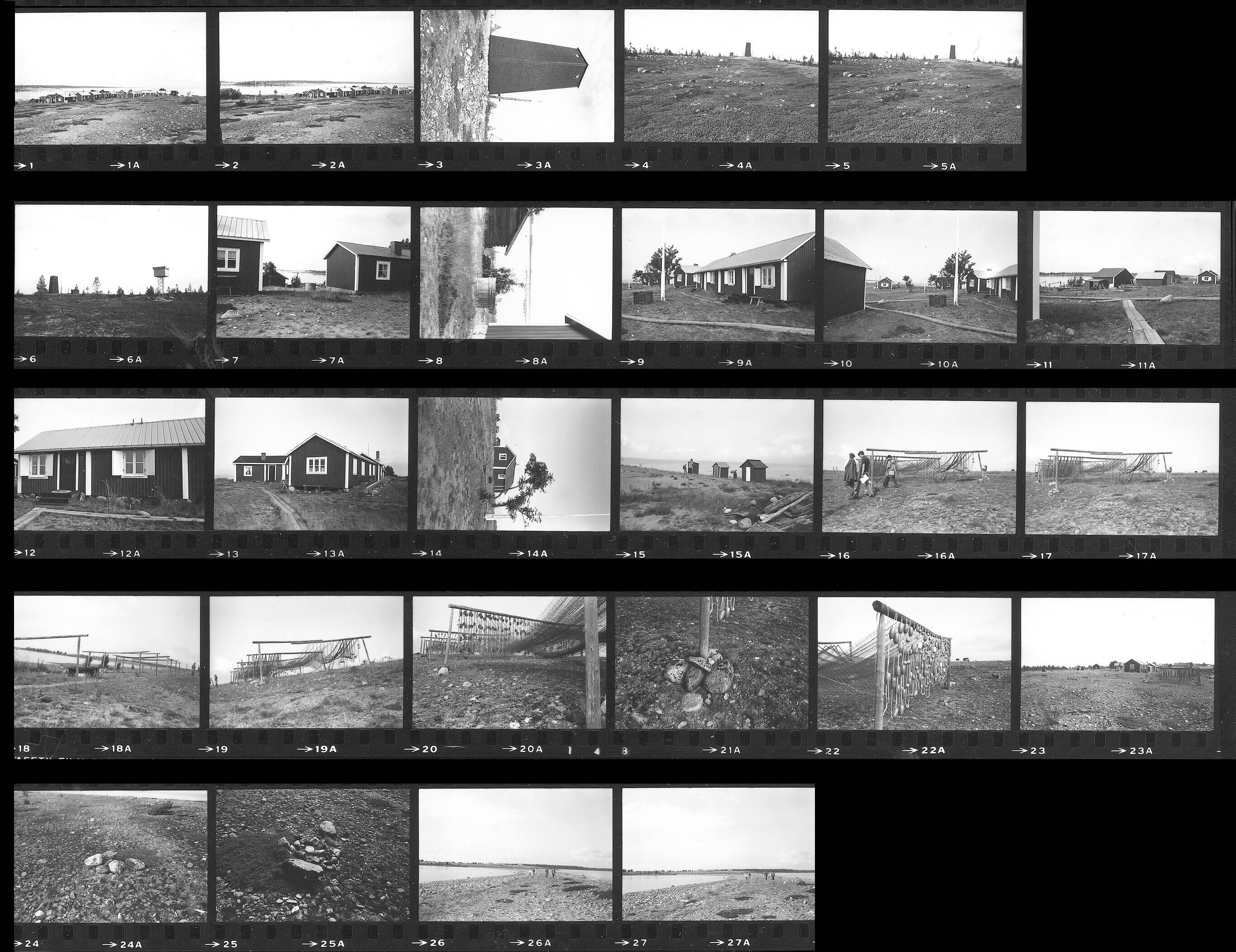 Piteå stad, Stor-Rebben.1-2. Fiskeläge.3. Båken.4-5. Husgrundsområde väster om båken.6. Båk och bevakningstorn från nordväst.7-14. Fiskestugor.15. Avträde.16-23. Torkställning för nät.24-25. Gistvallsrösen.26-27. Promenad mot Svarthällan (Spotthålet).