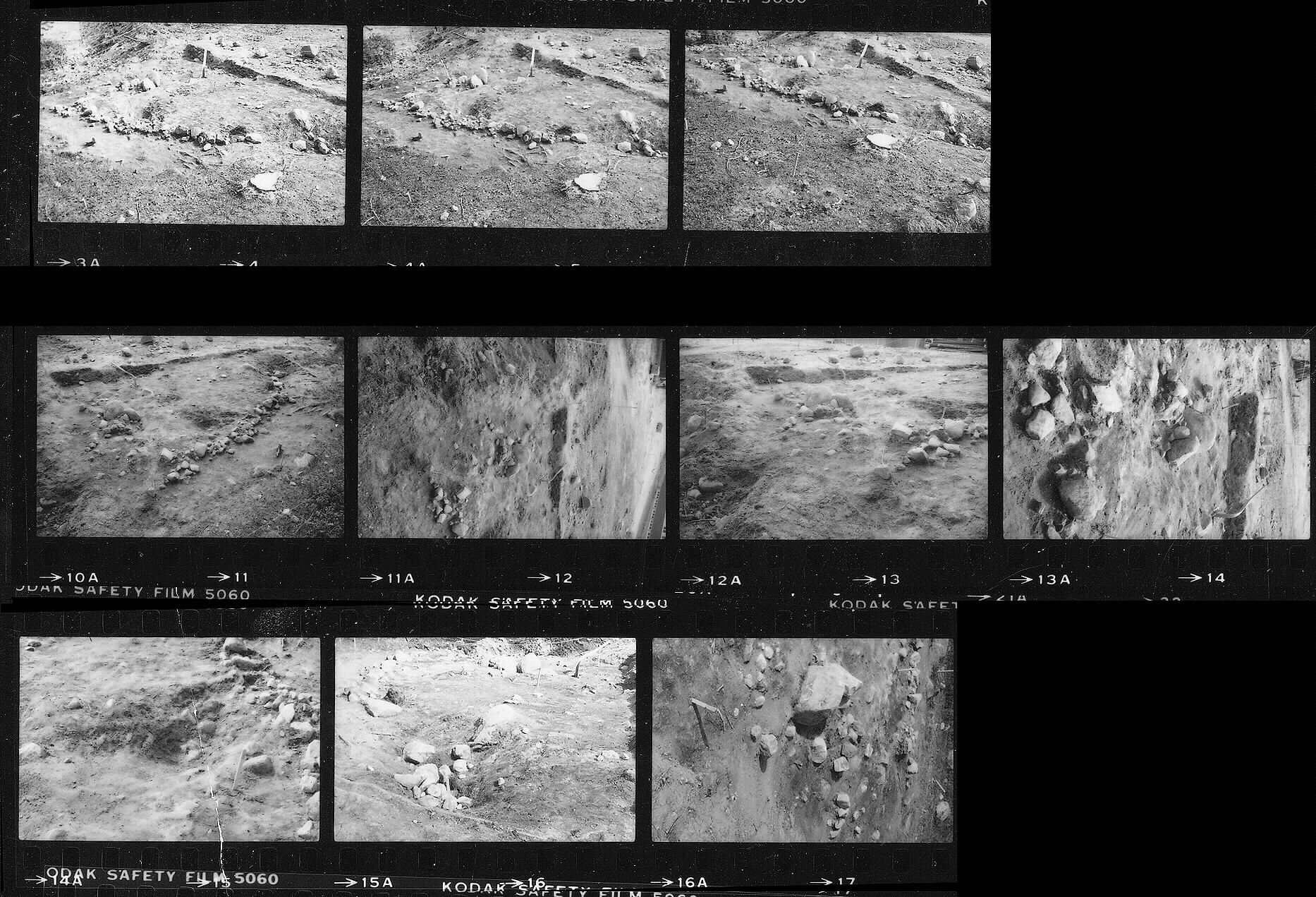 Jokkmokk. Vårdcentralen. Gamla kyrk- och marknadsplatsen. 4-6. Husgrund framrensad. Översikt från VNV. 7. Husgrunden från lägre höjd, från söder. 8. Husgrunden från lägre höjd, från NNV. 9. Husgrunden från lägre höjd, från nordost. 10. Husgrunden från lägre höjd, från NNV. 11. Husgrunden från lägre höjd. 12-13. ? 14. Syllstensrad från öster. 15. Rotstalp: Undersökningsområdets mitt, från norr (detalj). 16. Rotstalp: Undersökningsområdets södra del, från söder (detalj). 17. Husets norra vägg, från öster.