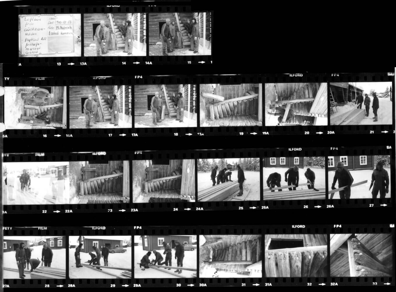 Nederluleå sn, Gammelstad. Friluftsmuseet Hägnan.Loftboden från Gültzauudden under uppförande på sin nya plats på friluftsmuseet.