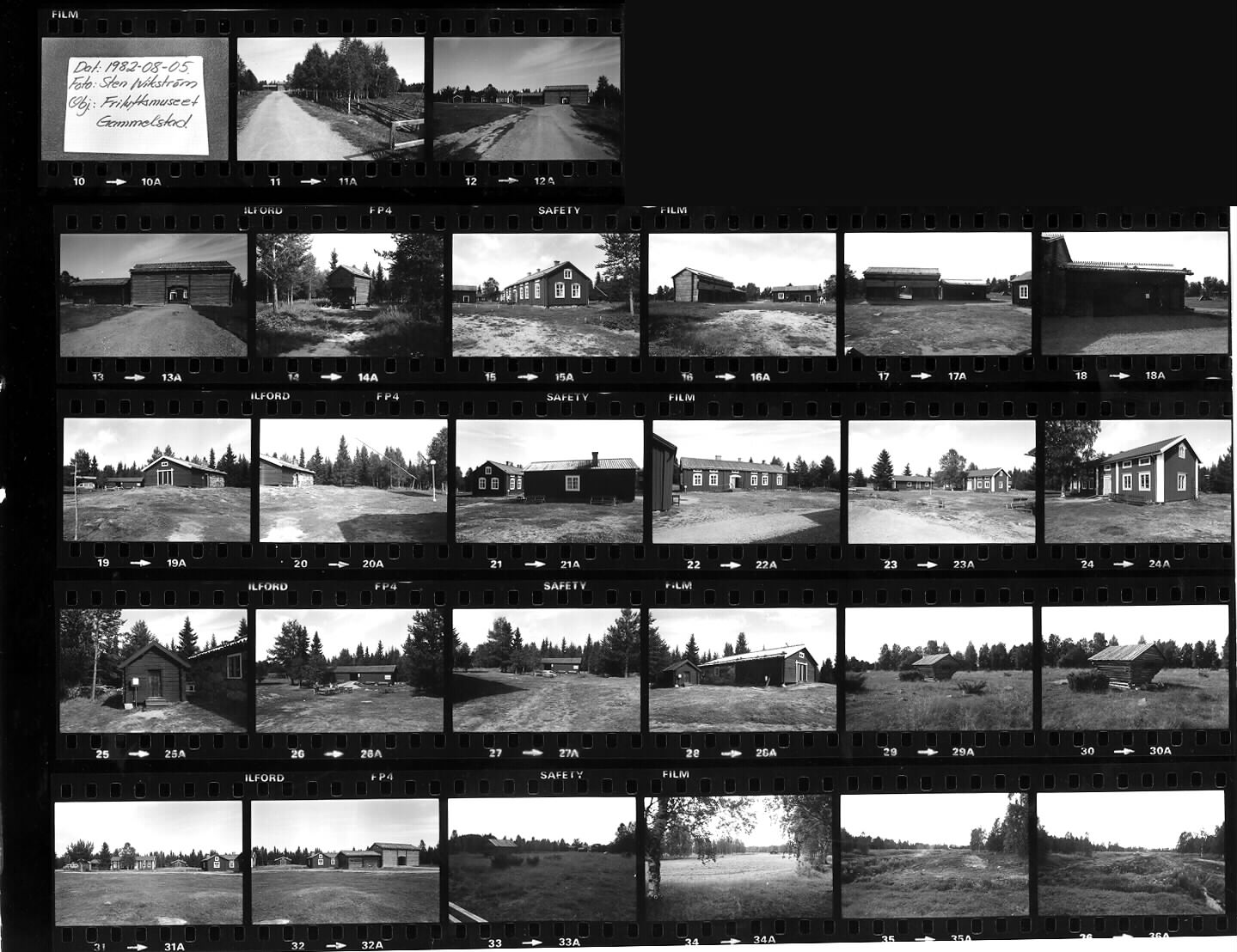Nederluleå sn, Gammelstad. Friluftsmuseet Hägnan. 10. Skylt: Gammelstad. Fornminnesvårdsobjekt nr 5. 11-12. Gammelstad: Infarten. 13. Stallet, loftboden. 14. Härbret. 15. Pitegården. 16-17. Loftboden, stallet, bagarstugan. 18. Stallet. 19. Långlogen, ladugården. 20. Brunnen. 21-22. Pitegården, bagarstugan. 23. Receptionen, Alviksgården. 24. Alviksgården. 25. Dasset. 26-27. Långlogen. 28. Dasset, ladugården. 29-30. Snedladan. 31-32. Vy över museet. 33. Gammal åkermark. 34. Nyplöjd åker. 35-36. Nyodling av gammal åker.