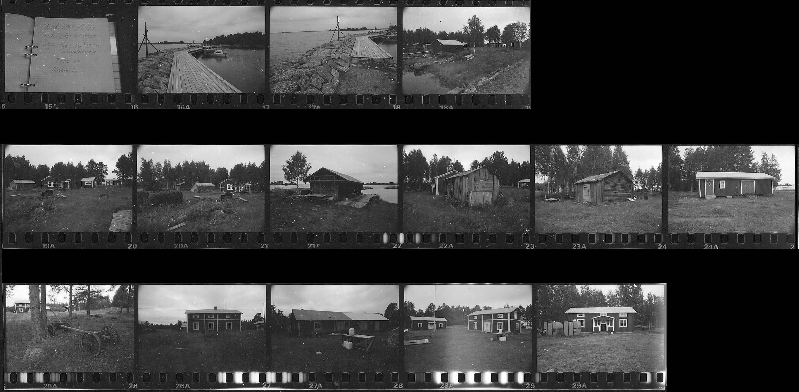 15A. Skylt: Rånön, Viken, Töre sn. 16A-17A. Angöringsplatsen. 18A-29A. Olika byggnader i byn.